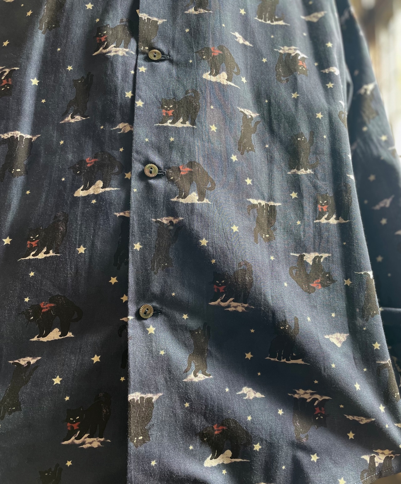 黒猫ちゃんが散りばめられたブラウスになっています。