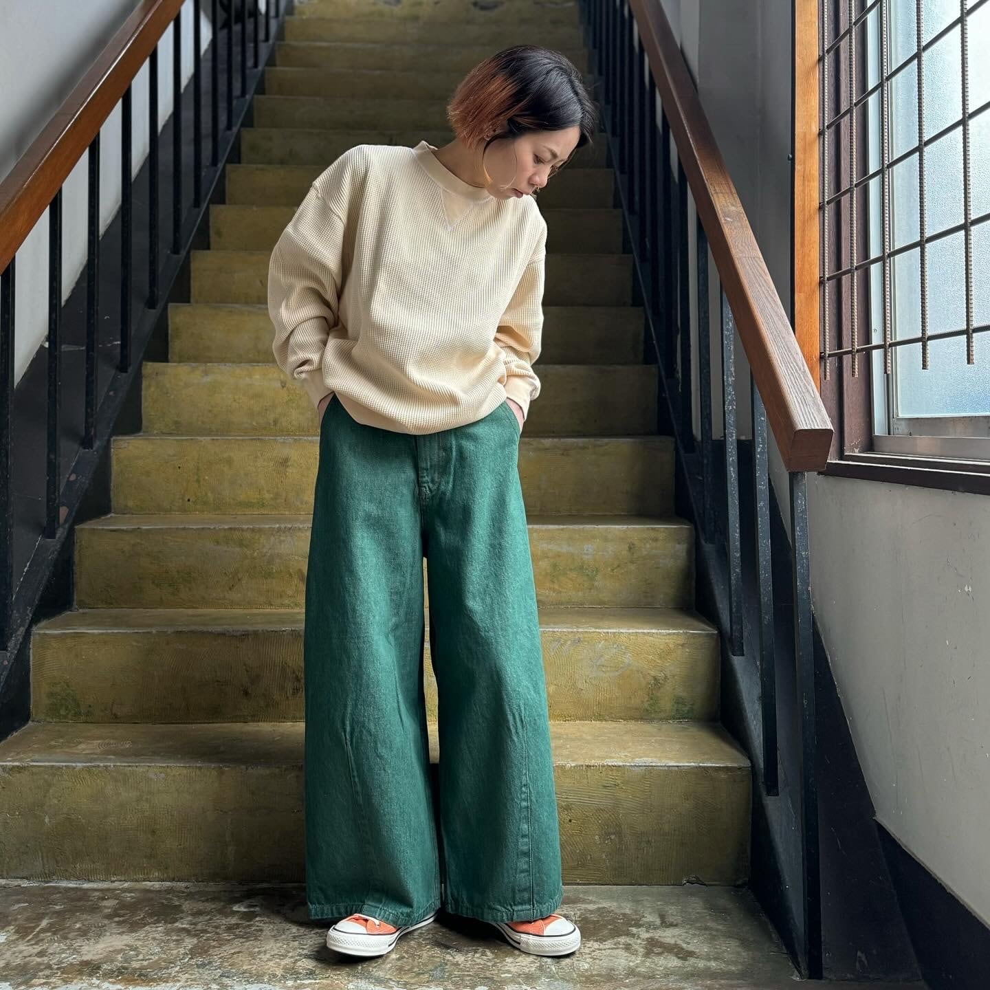 色落ち感のあるグリーンもまた特徴的です。