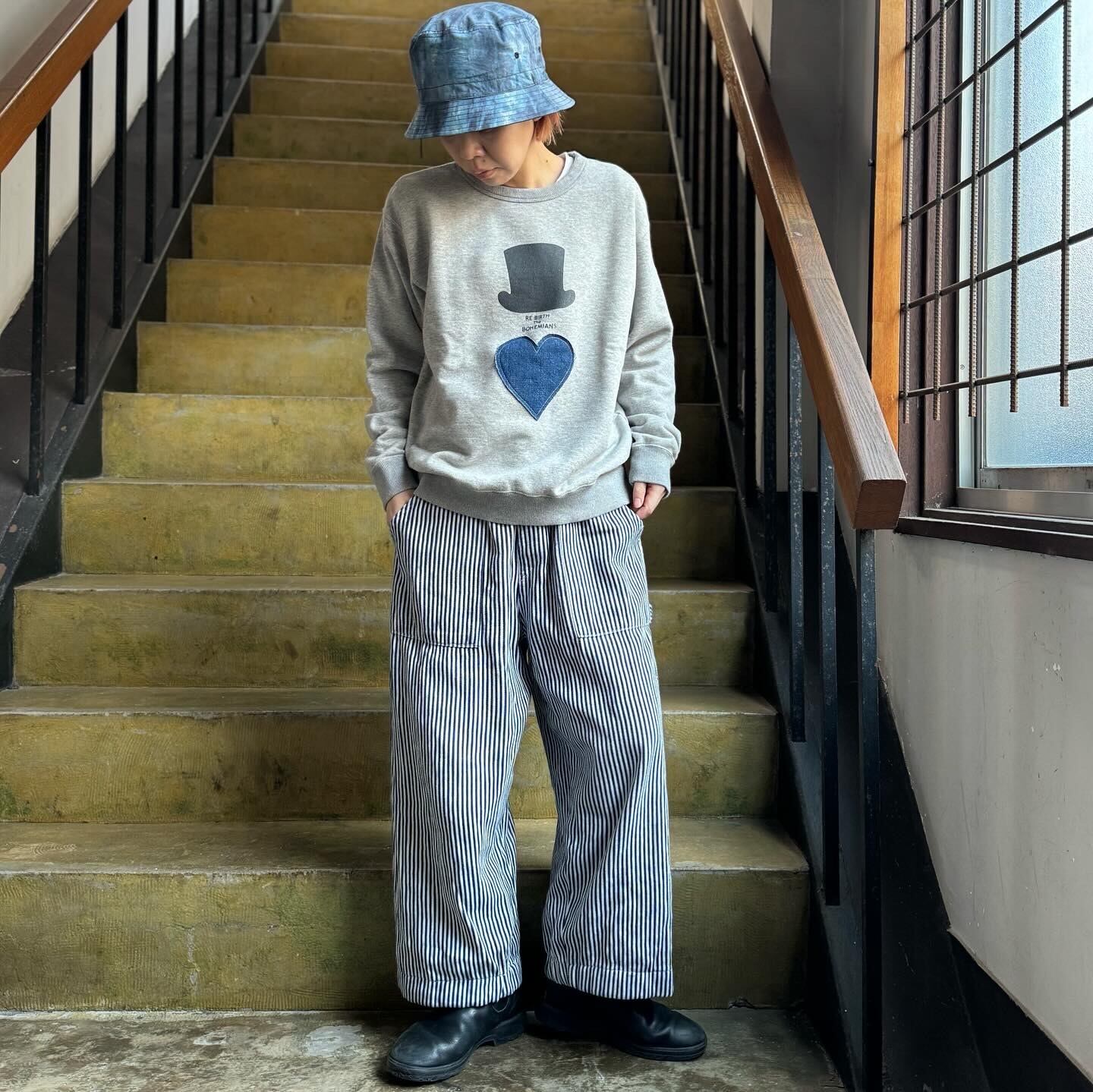 BOHEMIANS - NEW LOVE&HAT プリント/デニムパッチワーク クルースウェット長袖Tシャツ