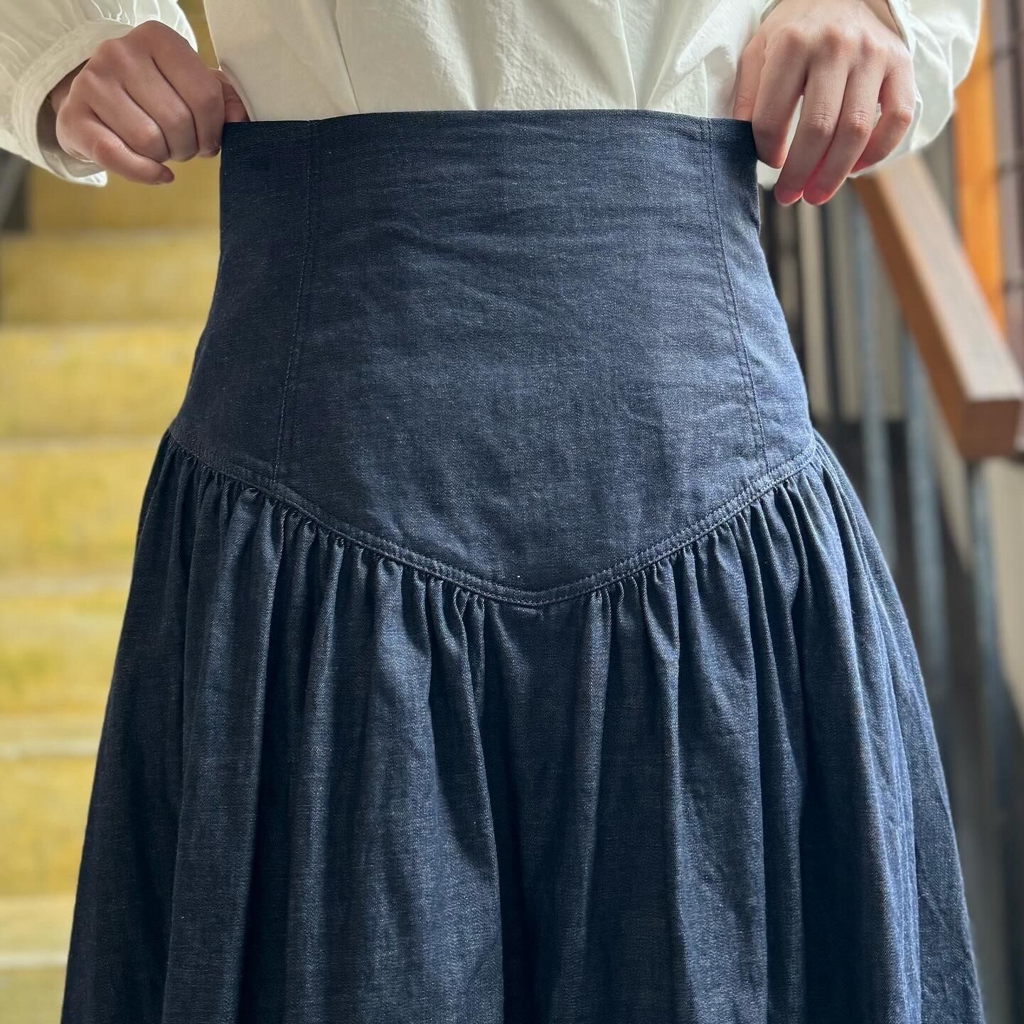 膨らみが強いボリューム感を意識した綺麗めなデニムスカートです。