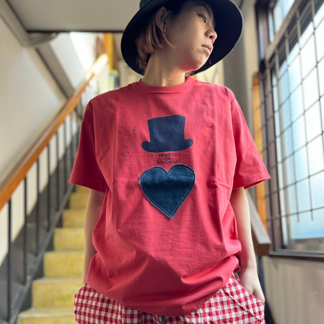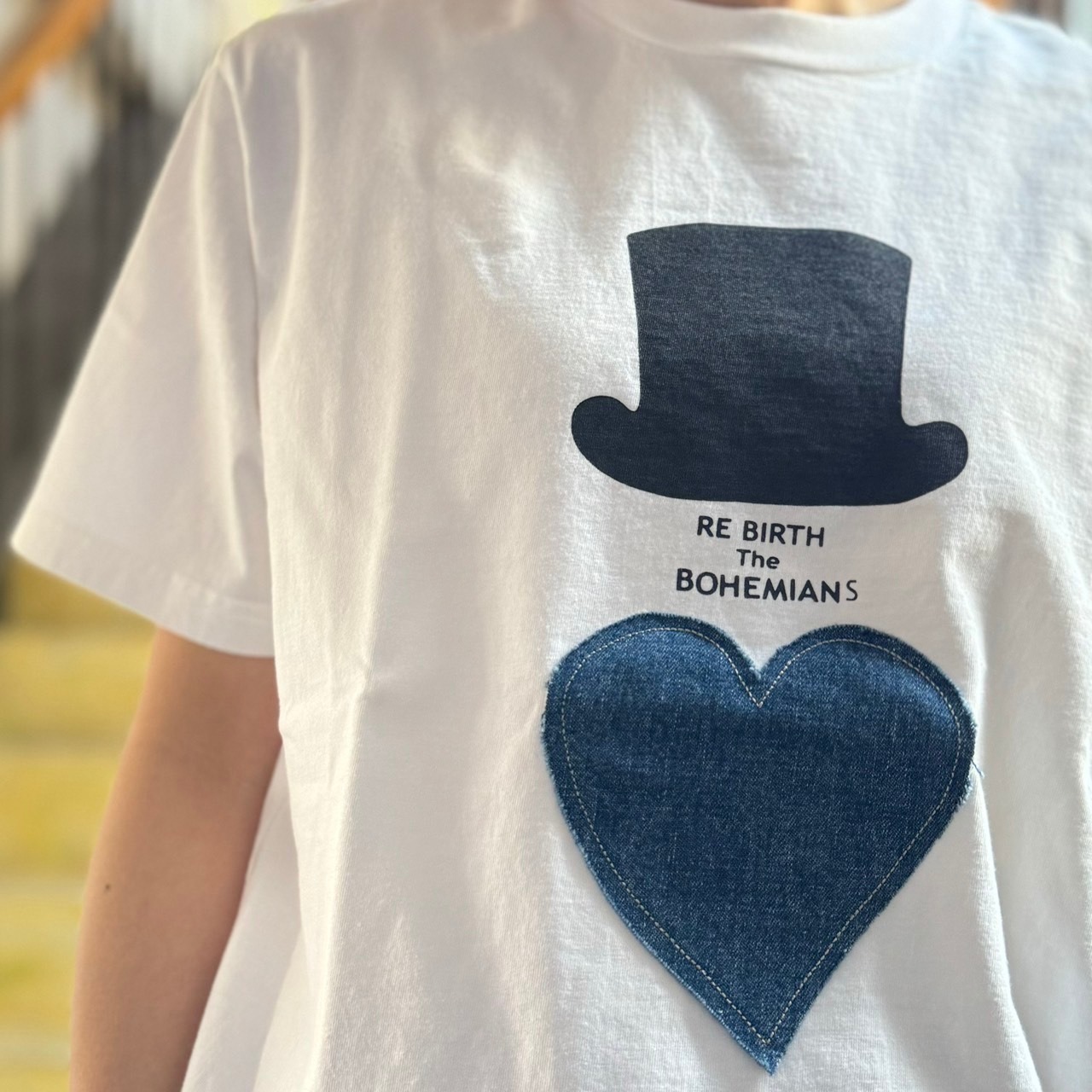 BOHEMIANS - NEW LOVE&HAT プリントデニムパッチワーク S/S TEE(半袖Tシャツ)