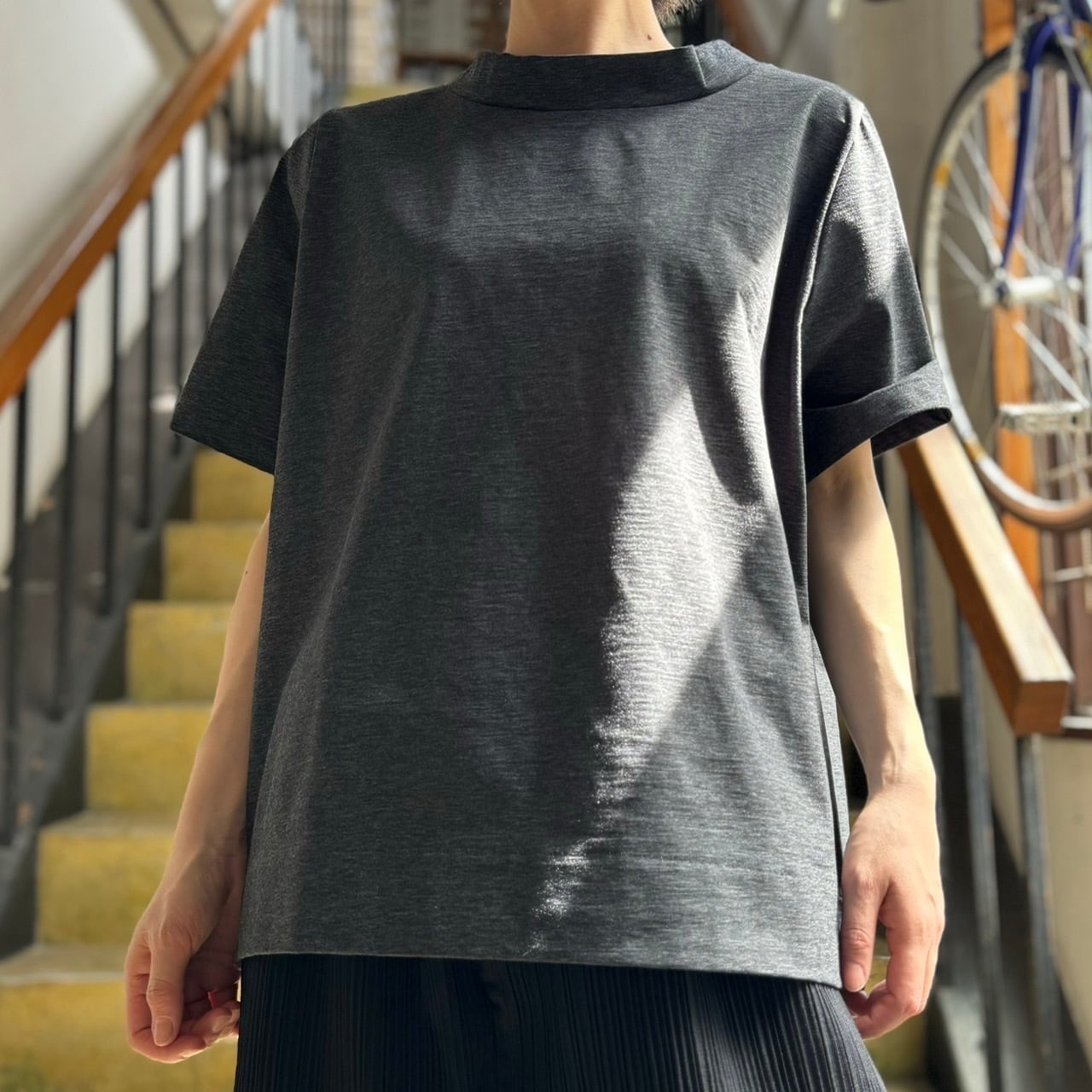布帛のようなタッチのカットソー生地を使用したTシャツです。