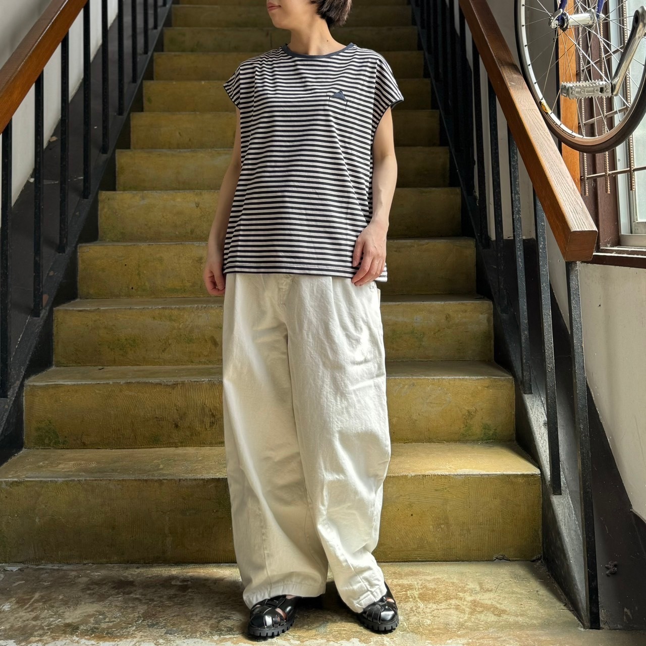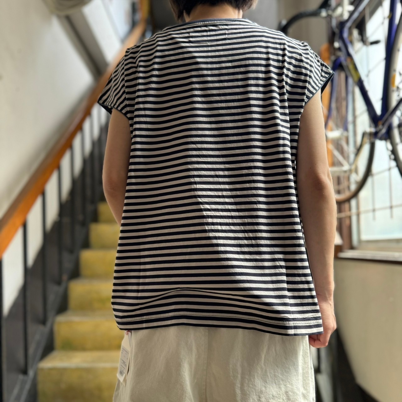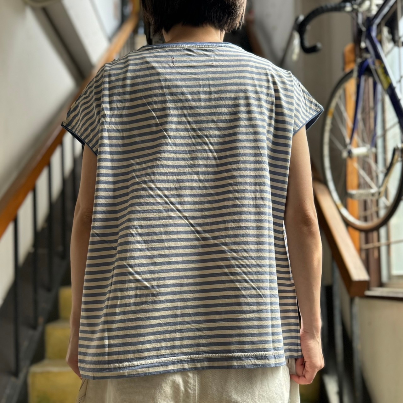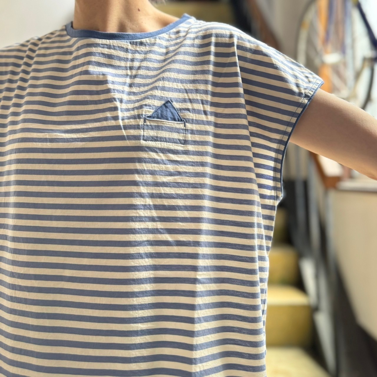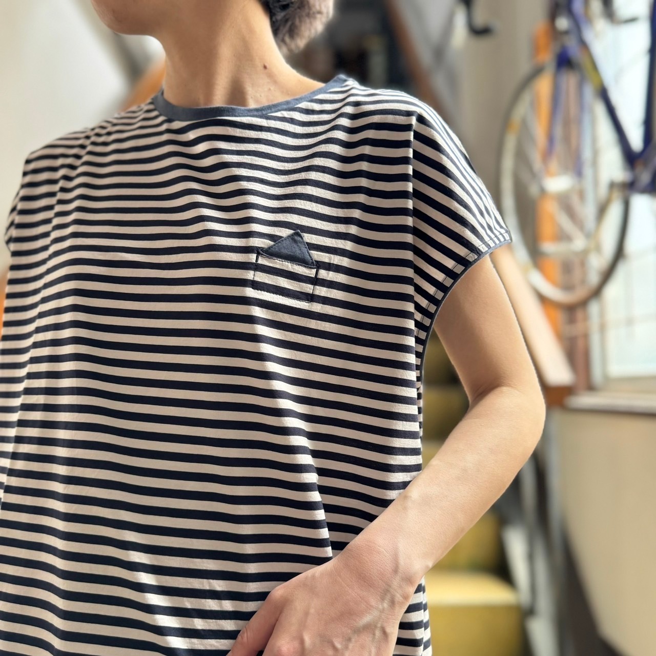 l’atelier du savon - 小さなさんかく屋根ポケット ボーダーフレンチTシャツ