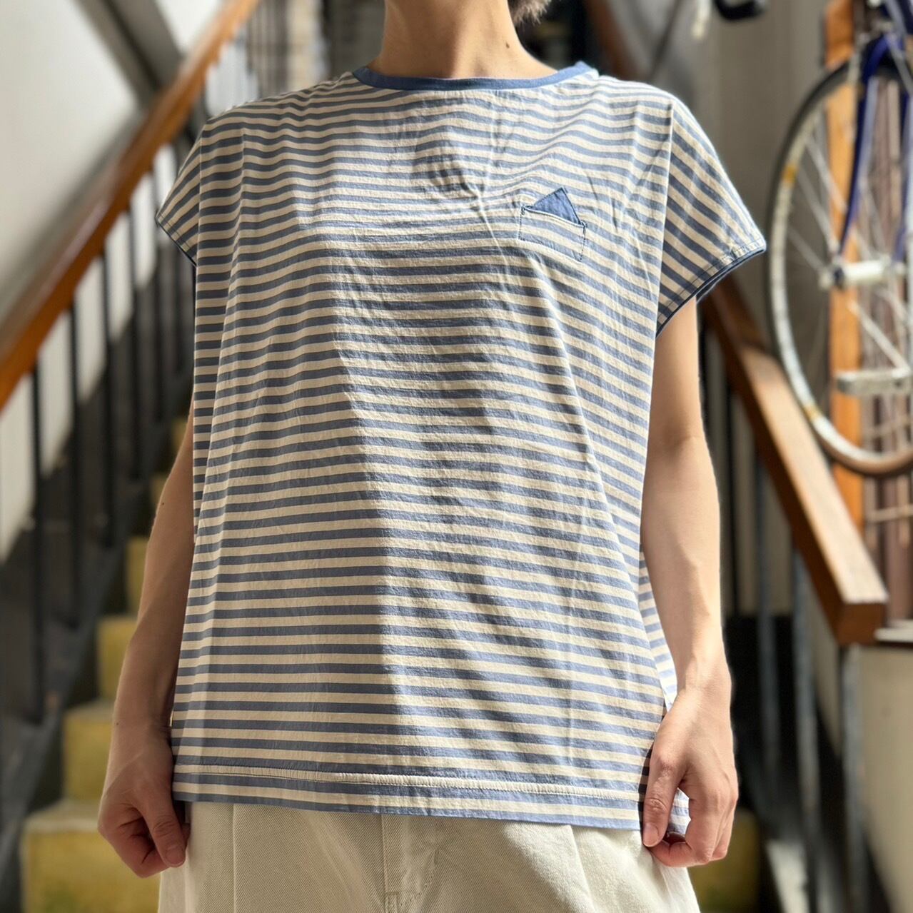 肌離れの良い新鮮なカラーのボーダーカットソー。