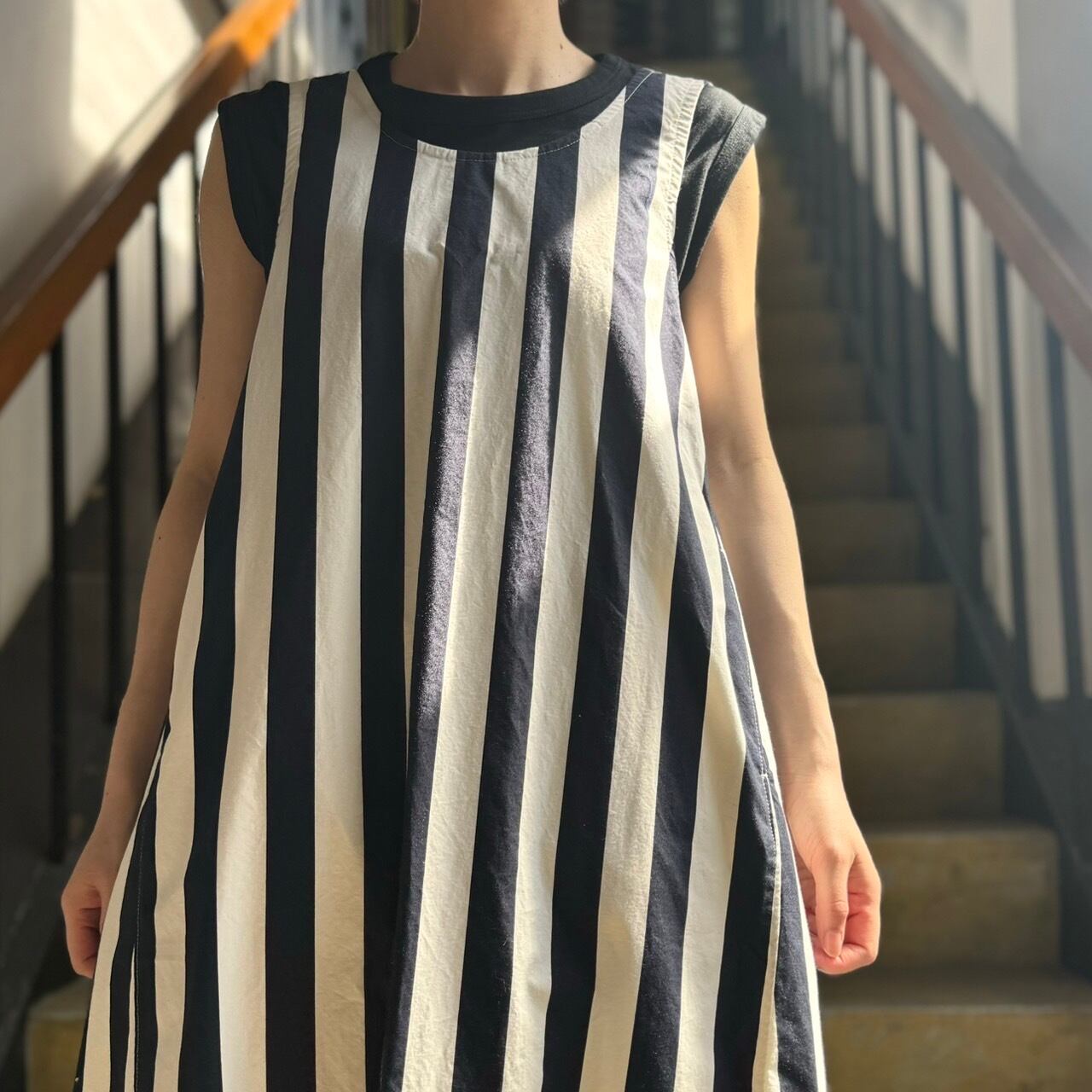 大胆なストライプをプリントした夏らしい爽やかなワンピースです!