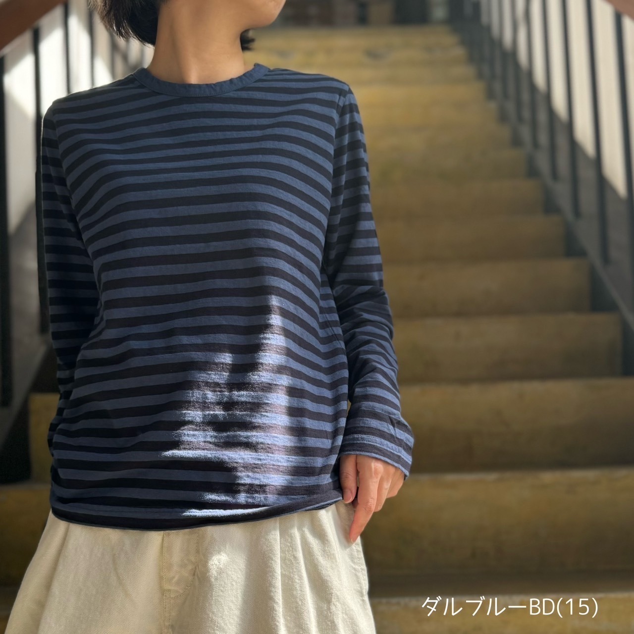 シンプルな長袖タイプのボーダークルーネックTシャツです。