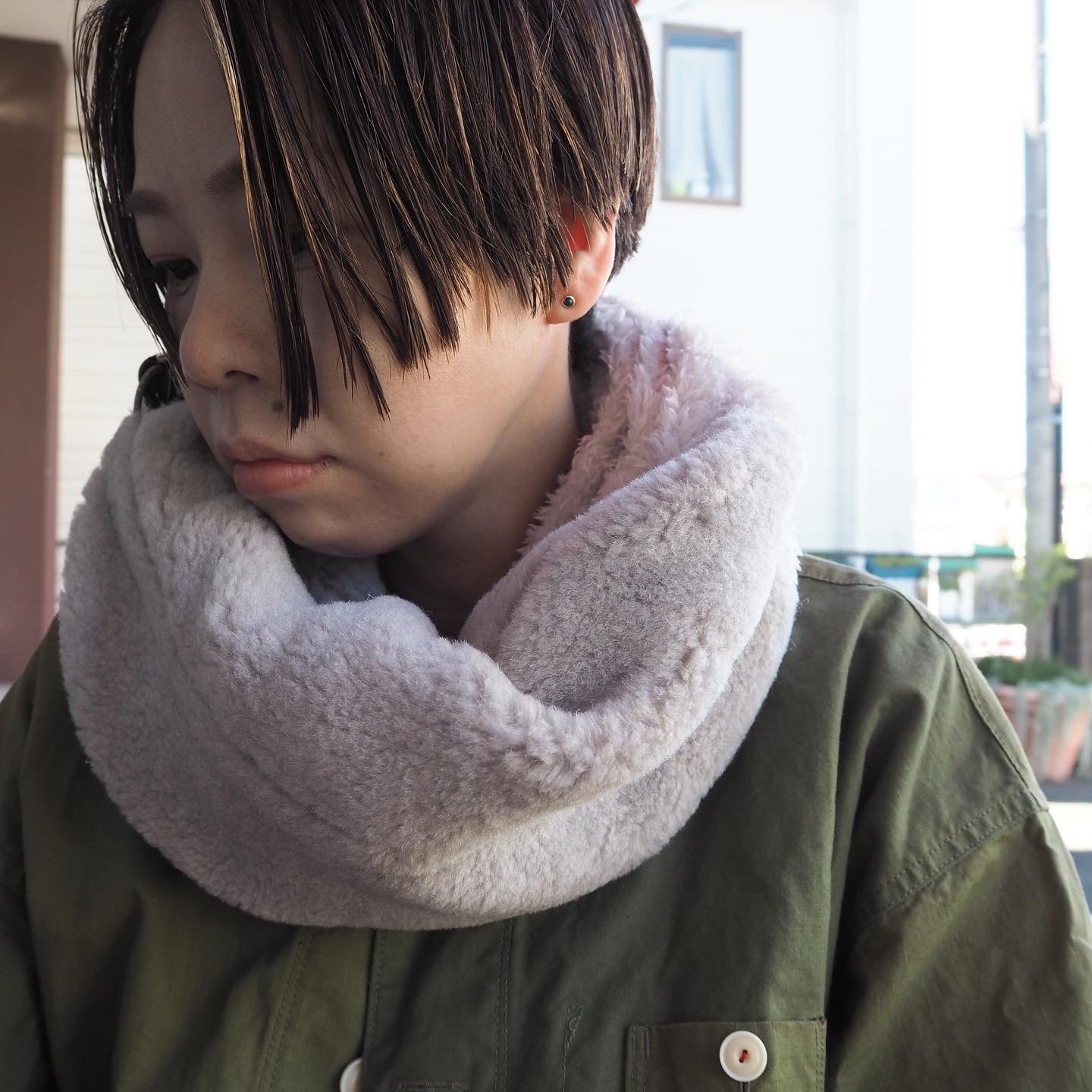 2種類の生地を使った2トーンタイプのもふもふボア素材のスヌードです。