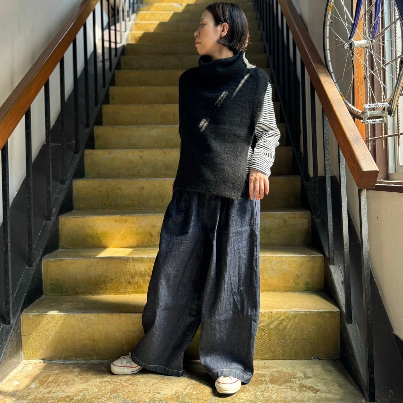 首元は長めのタートルで、クシュッとさせたり、折り曲げたりして