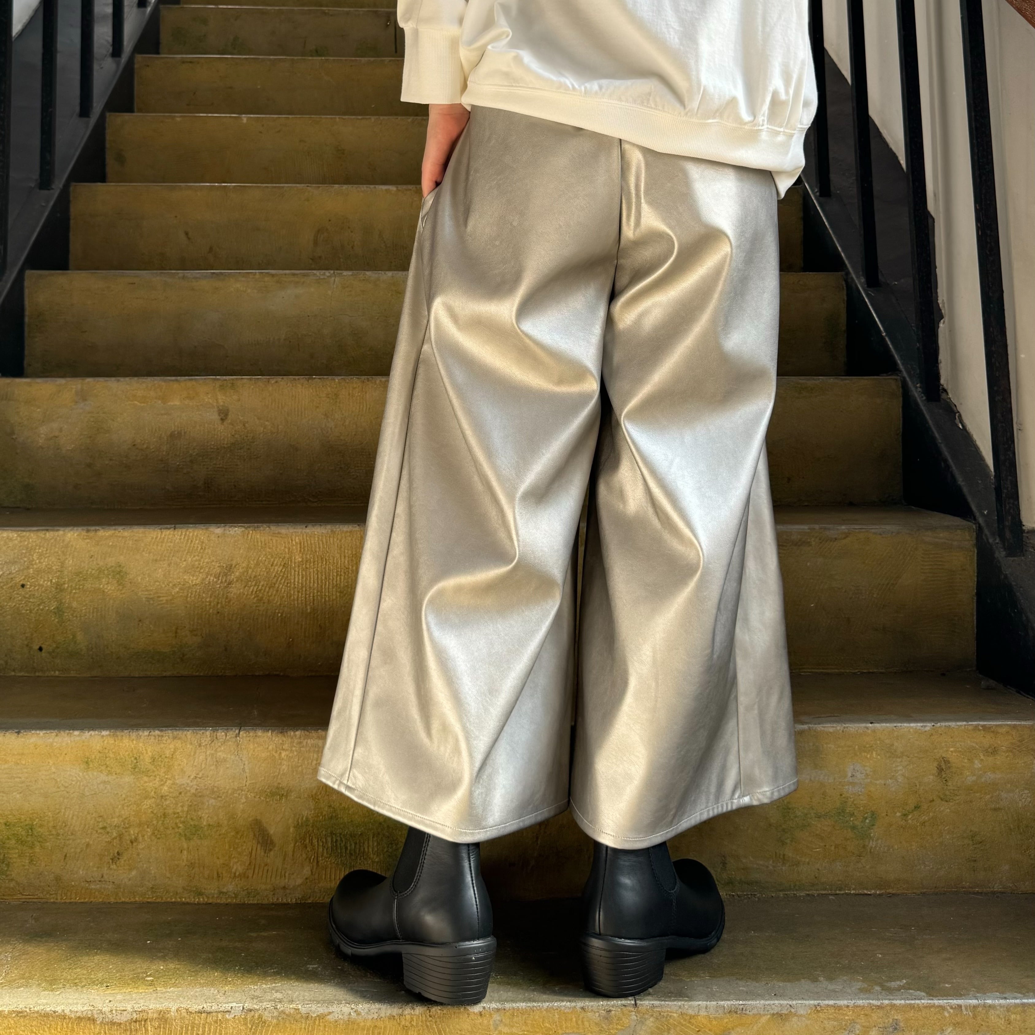 ソフトタッチな合皮レザーを使用したワイドパンツです。