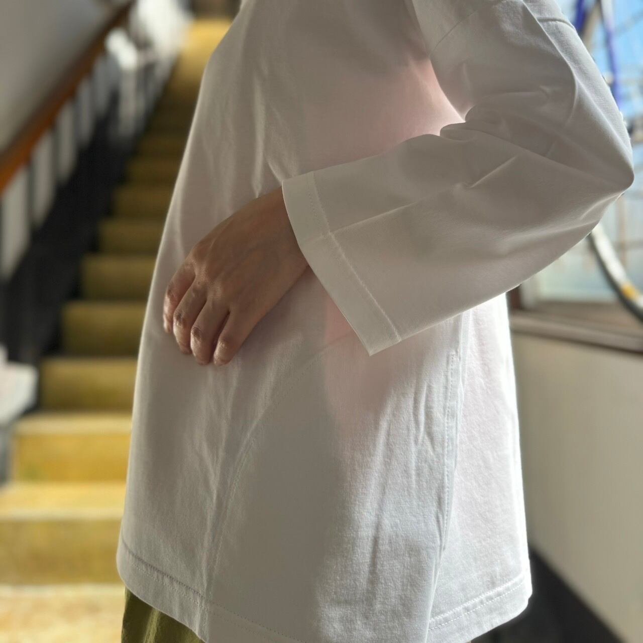 7分袖なのでまだまだ暑いこの季節にも使い勝手がよい形かと思います。