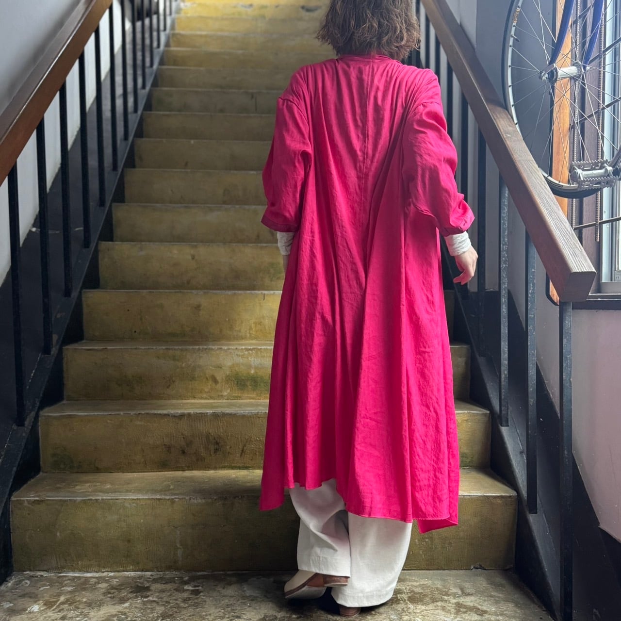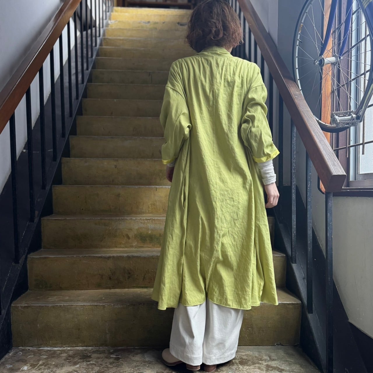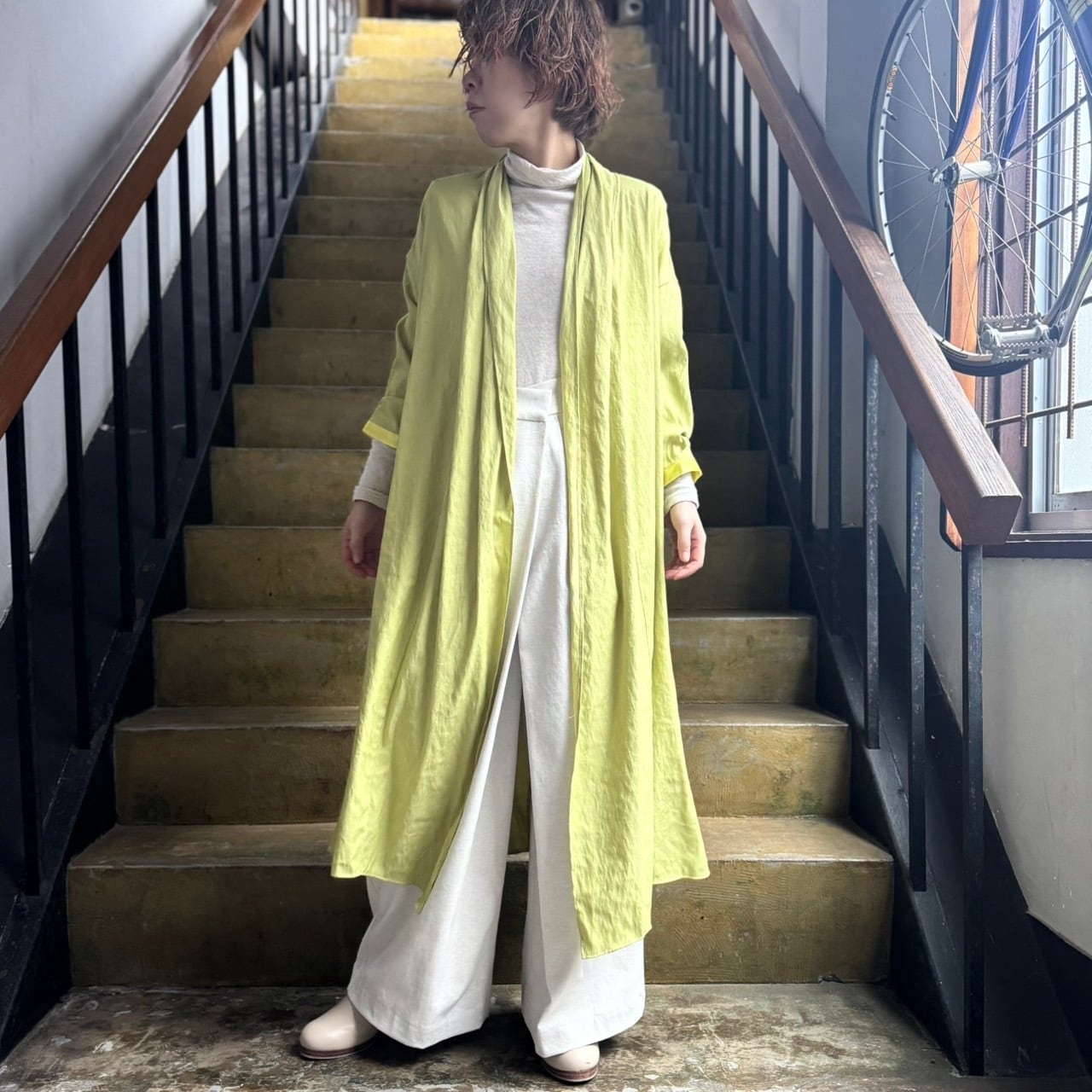 薄手で軽やか、そしていてしなやかなドレープの効いた軽めな羽織ものとなっています。