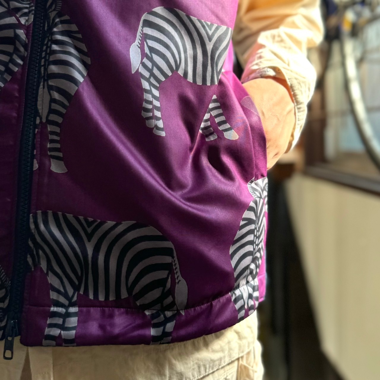 前見頃部分にはナイロン素材でLOVE ZEBRA柄模様を入れ、