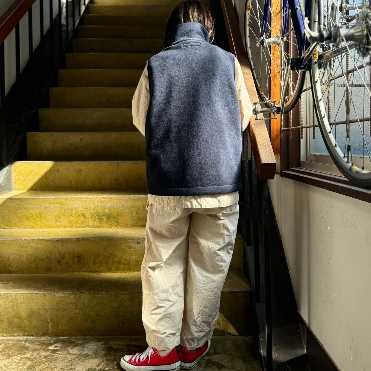 幅広でゆったりシルエットのZIPアップベストです。