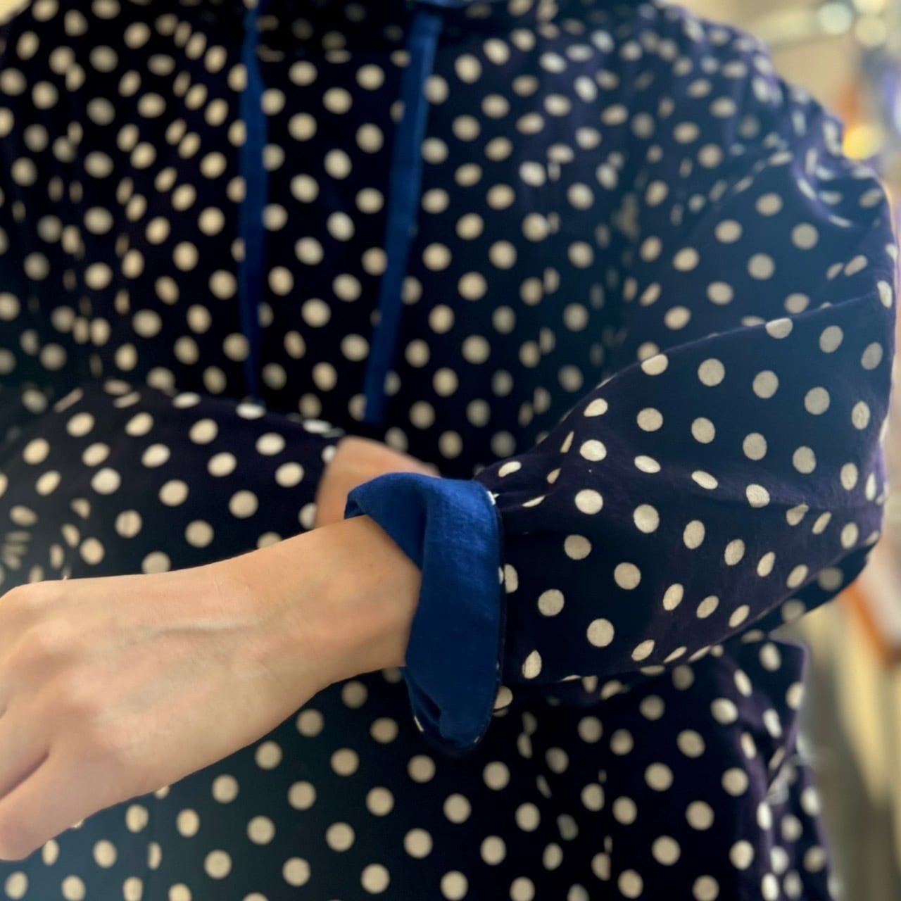 水玉も抜染することで、エッジがやさしい印象に見えるアイテムとなっています。
