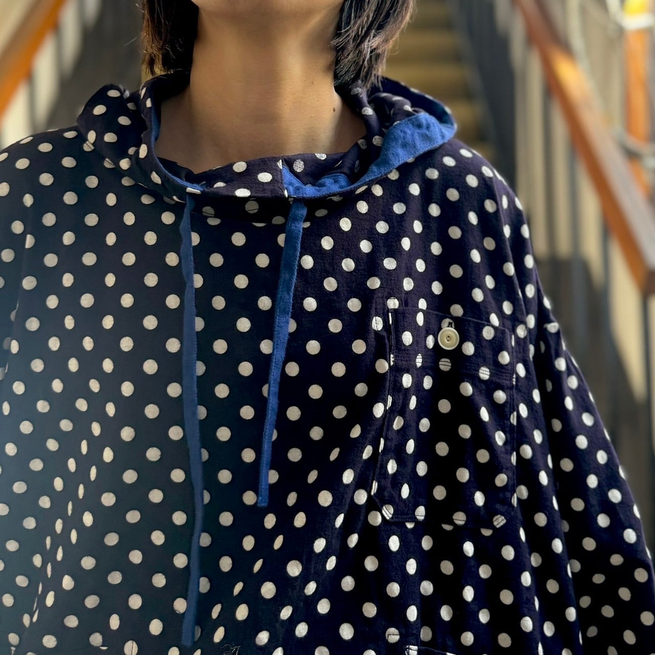 快晴堂 - グレーとネイビーの抜染水玉/フードプルオーバー