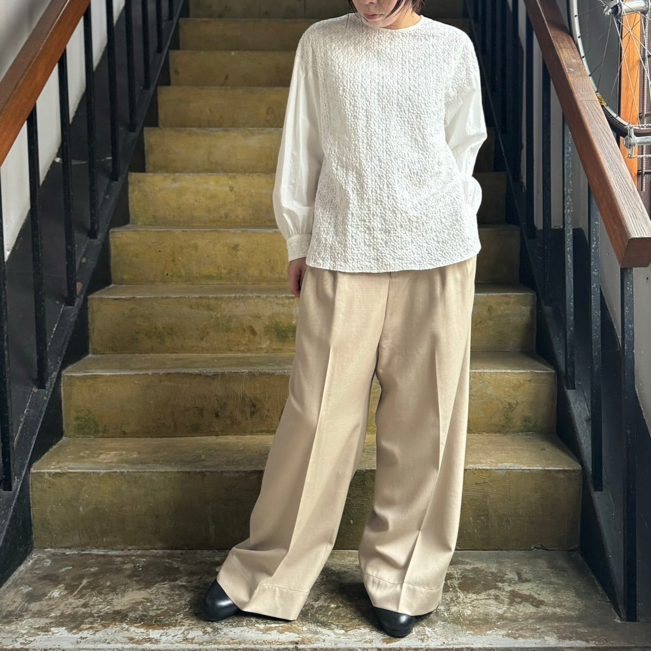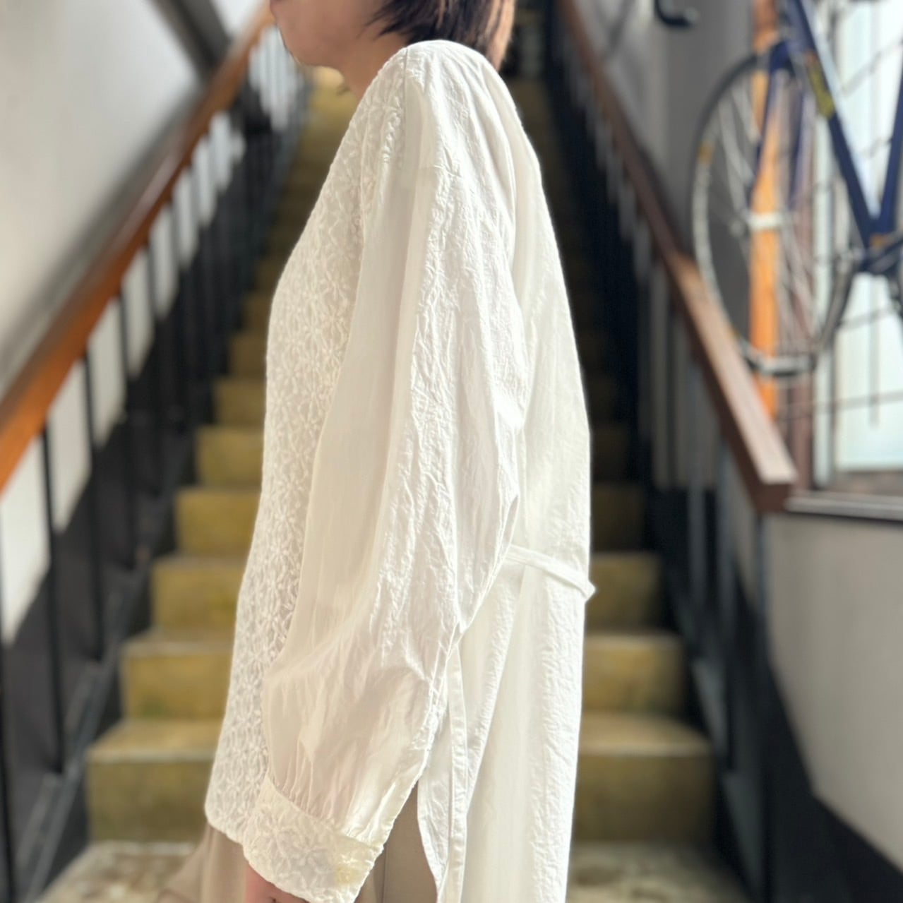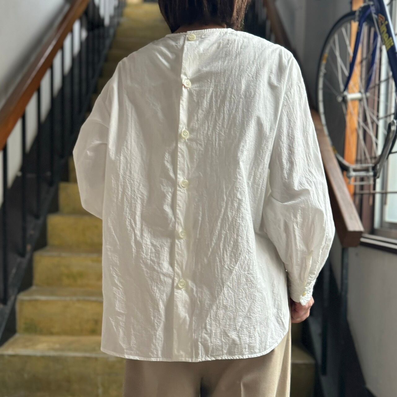 縮みによるシワ感も相まってふっくらとした印象のブラウスに✨