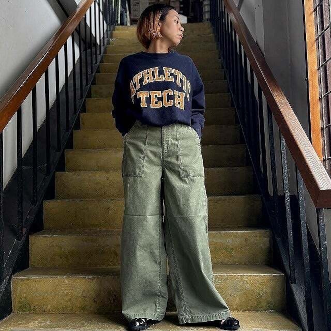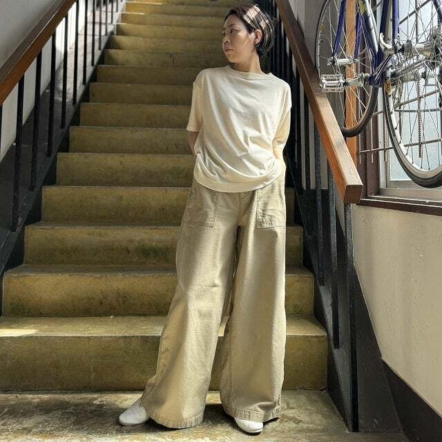 ワイドなシルエットに合わせてハイウエストですっきりと