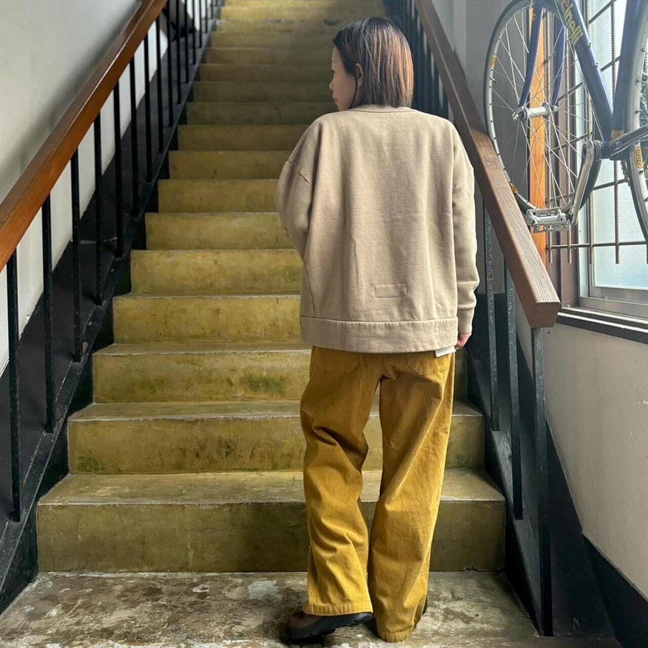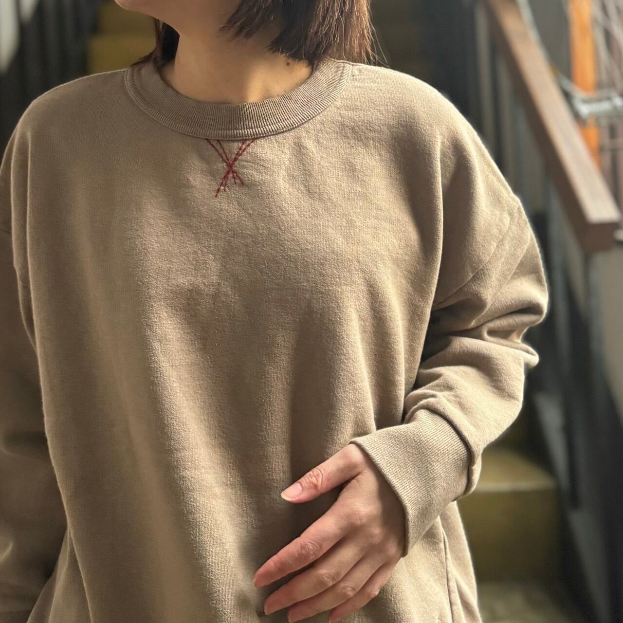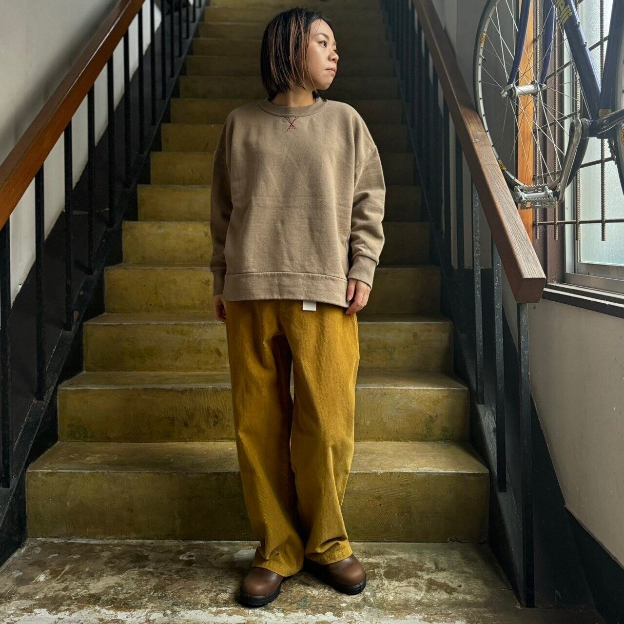 通常のトレーナーに比べて、身幅のゆとりと型落ちでワイドなシルエットで作ってあります。