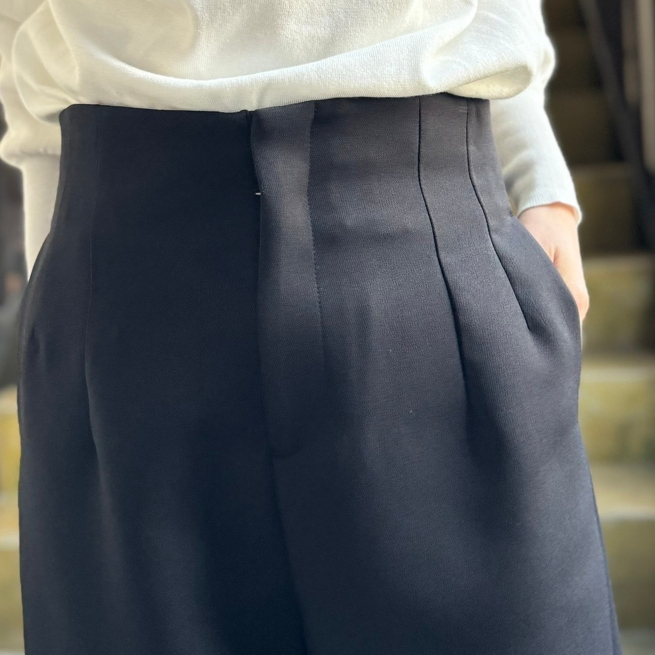 ダーツを効かせたハイウエストデザインで