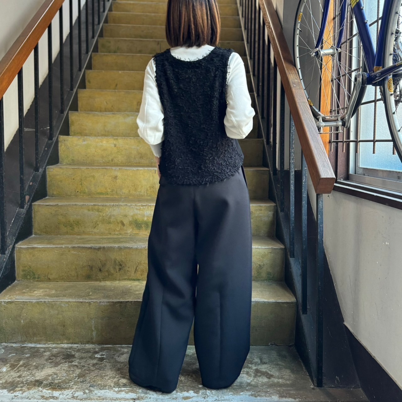 iki - トリプルクロス バレルレッグパンツ(ブラック)