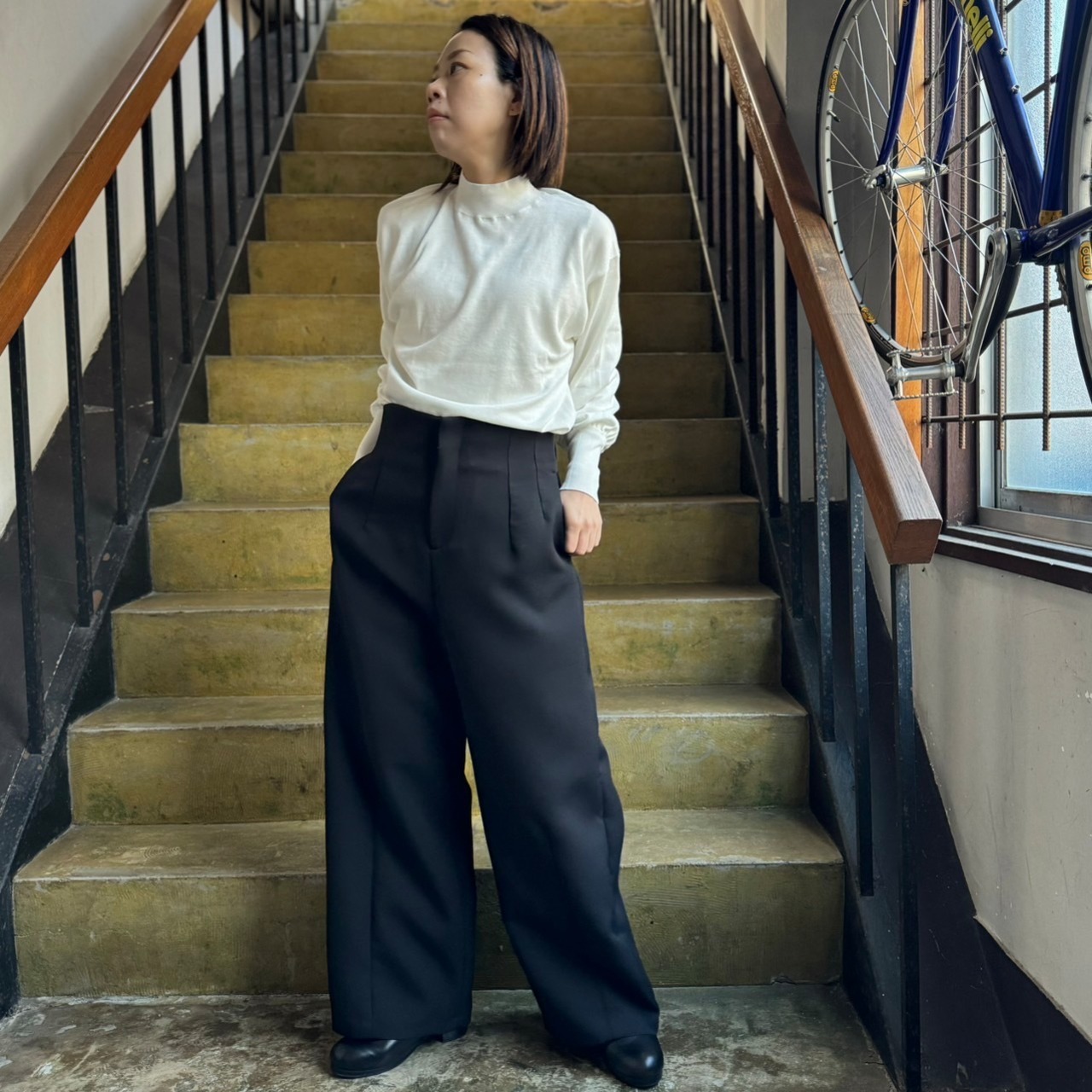 ハリ感と反発ある素材を生かした丸みのあるシルエットのパンツです。