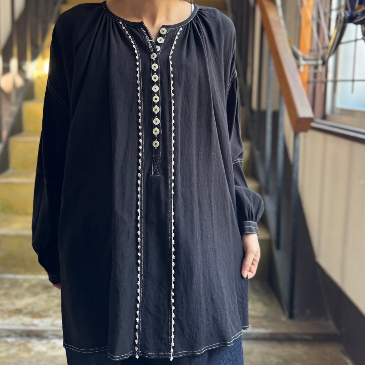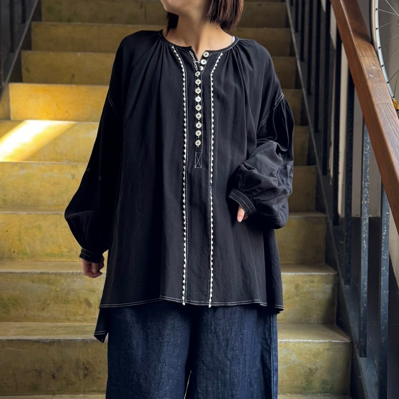yuni - レーヨンコットンキュプラ/刺繍ギャザーブラウス
