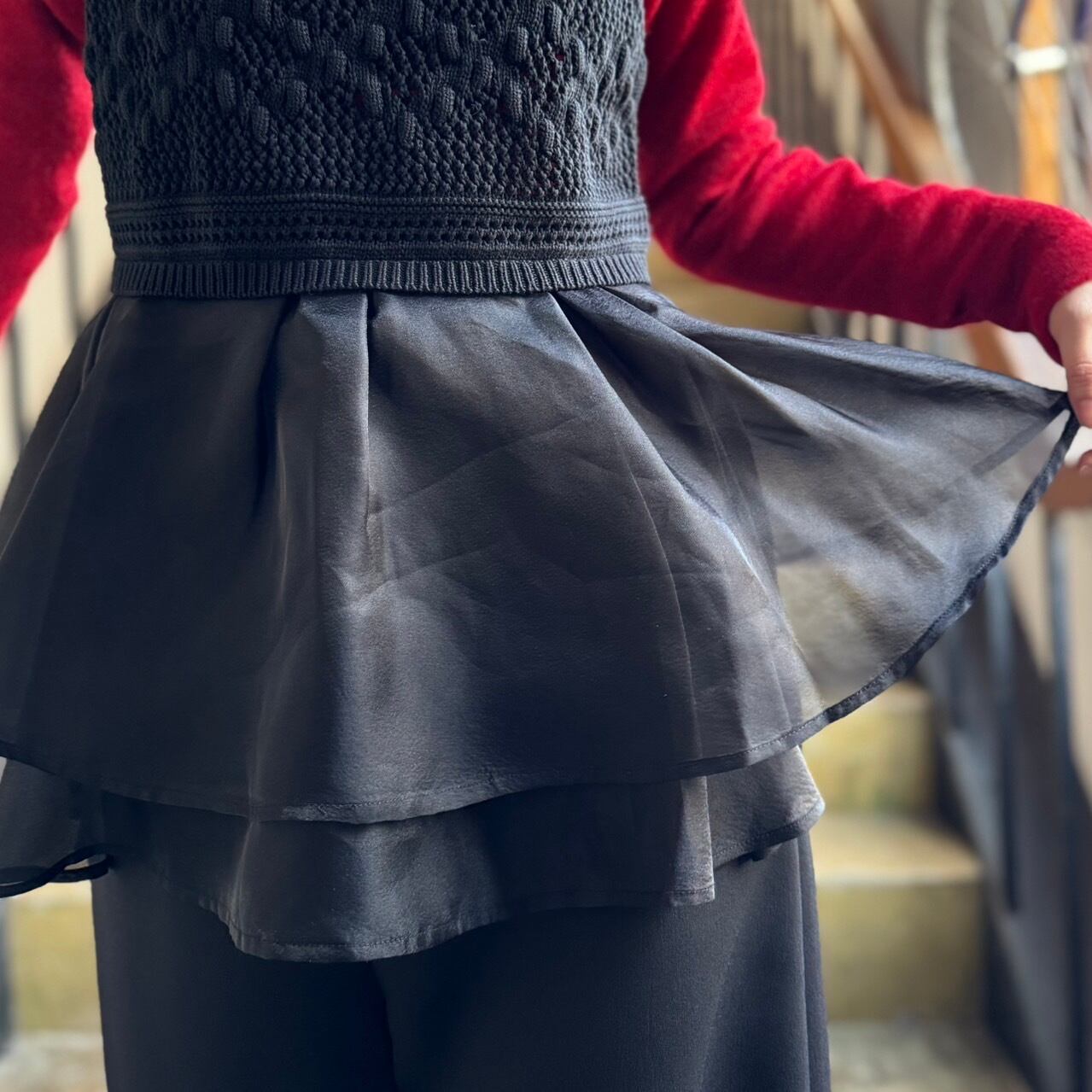 バスト下からは見頃の素材とは異なるシアーな生地をたっぷりフレアな