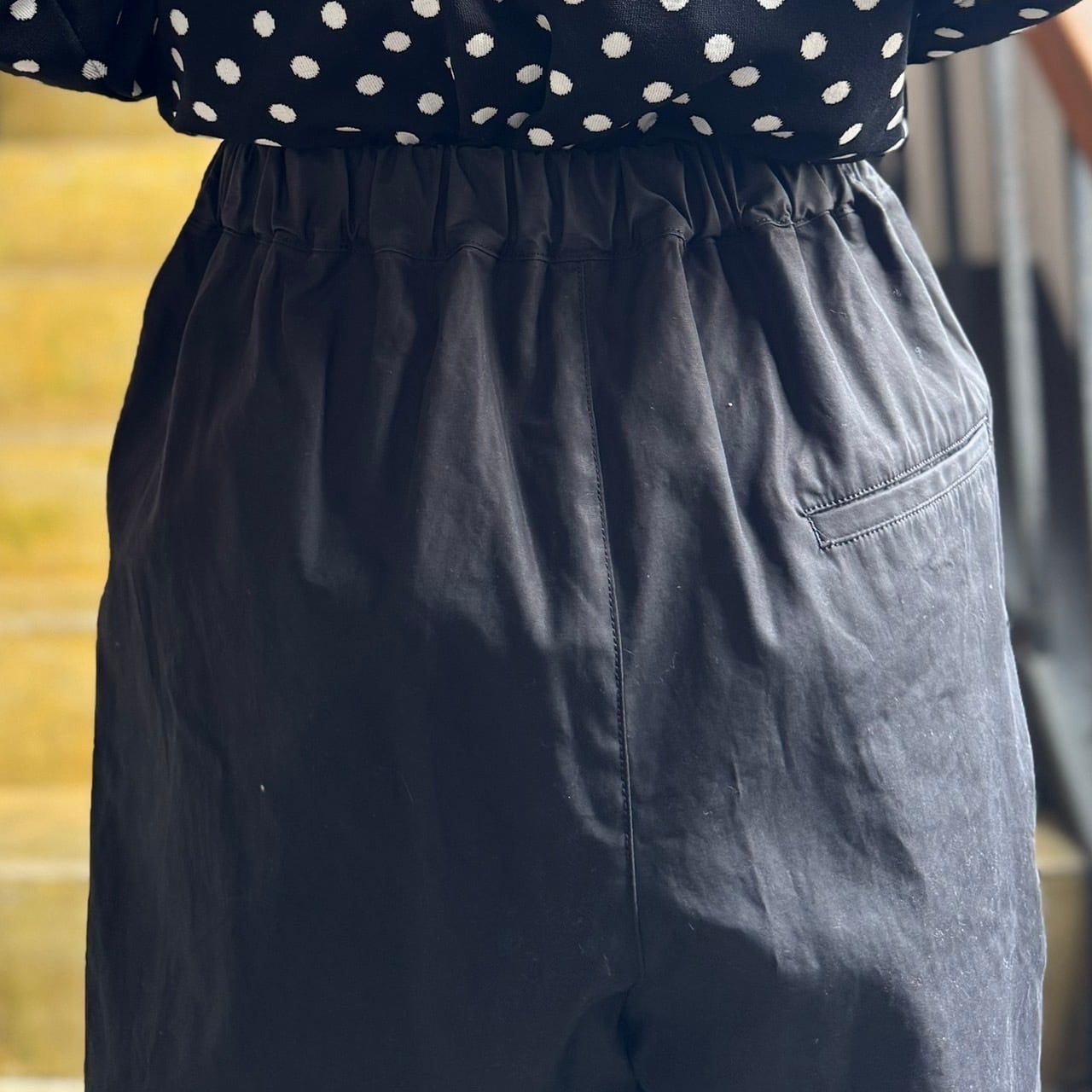 定番のシルエットのバックゴムパンツが新たな生地で登場しました!
