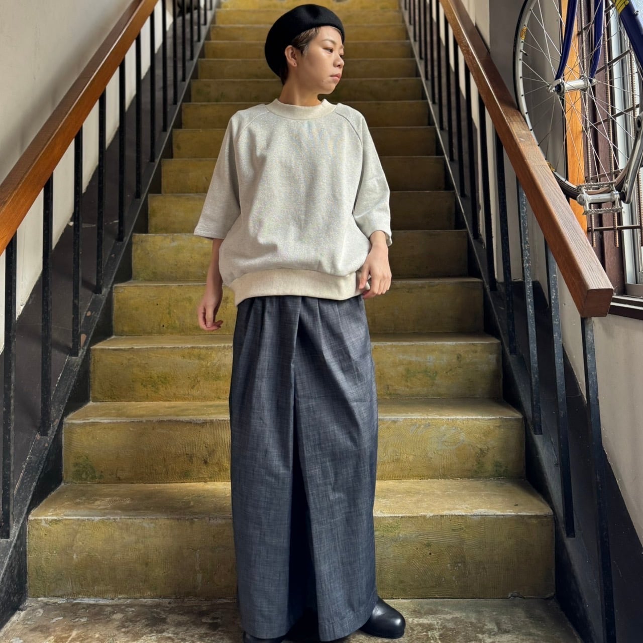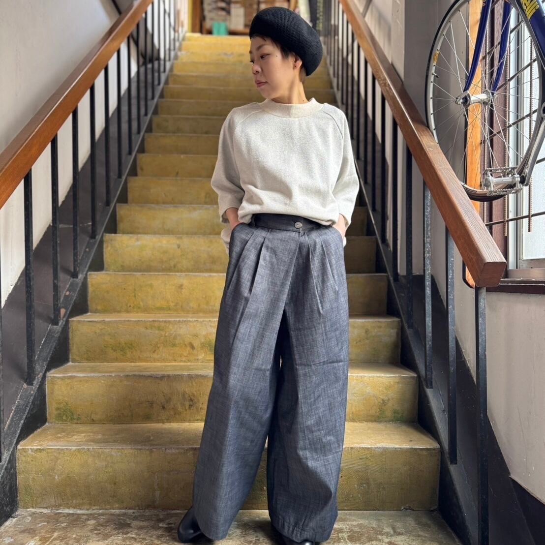 デニムではないので色落ちする心配がなく気兼ねなく着ていただけるパンツです。