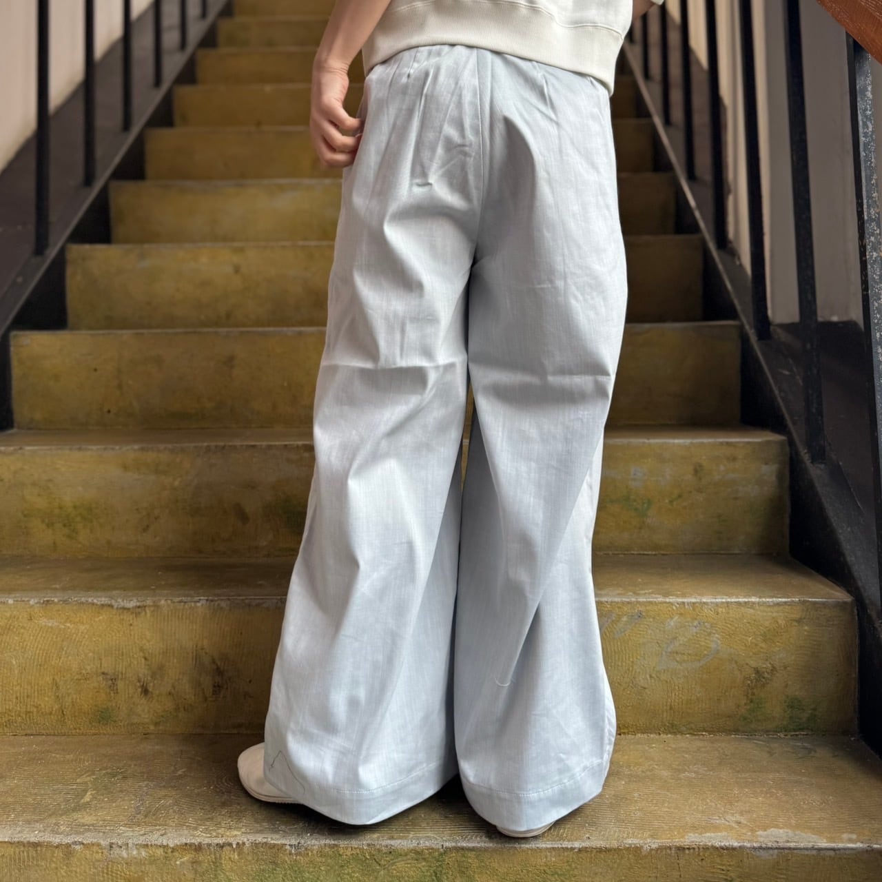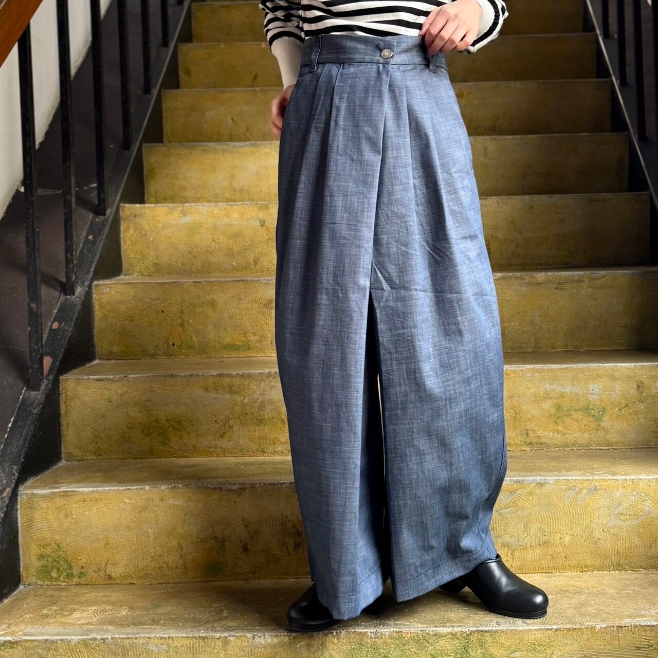 普段使いしやすいデニム調のシャンブレー生地を使用したパンツです。