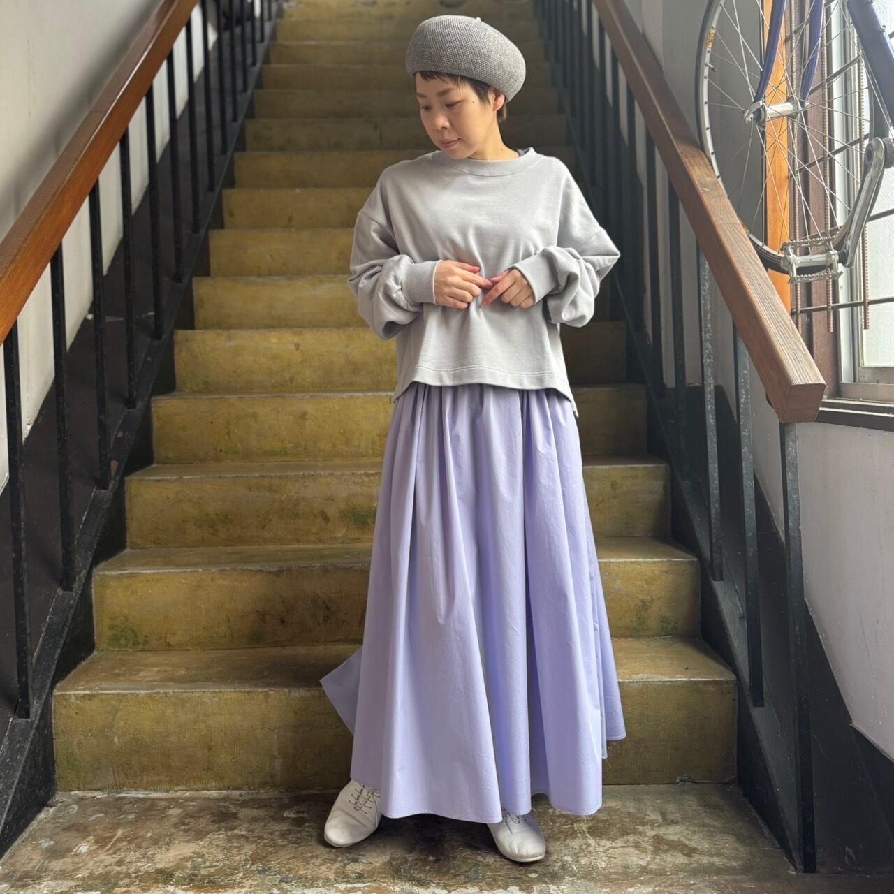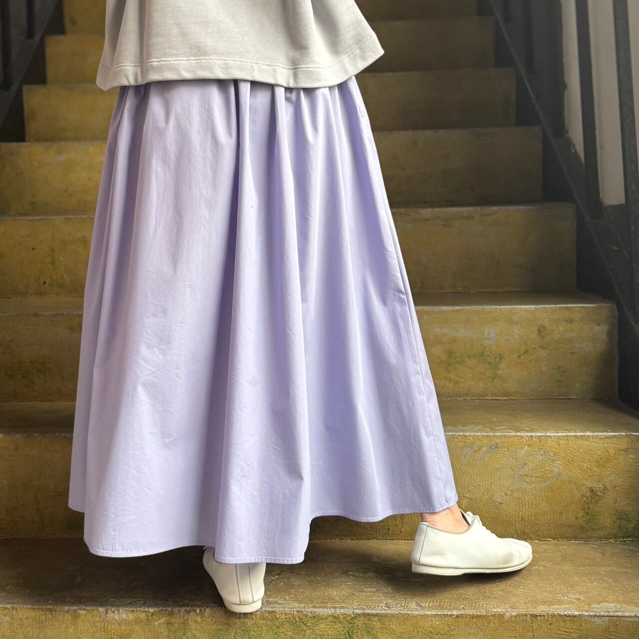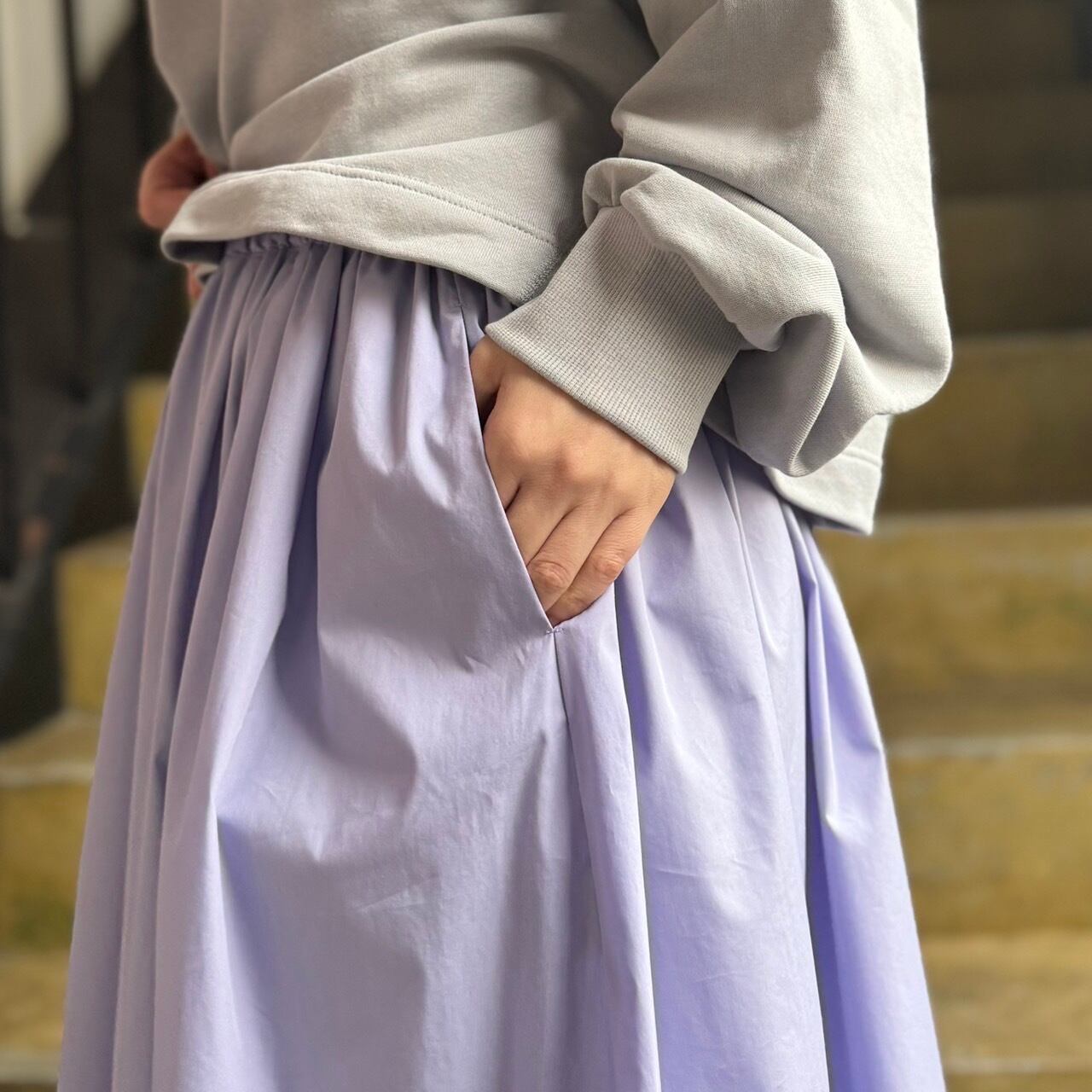 滑らかな肌触りの綿ポリ素材のタイプライターを使用したギャザースカートです。