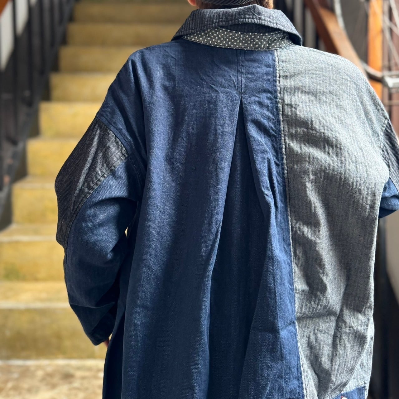 ヘリンボーンデニムを縫い合わせた快晴堂オリジナル生地を